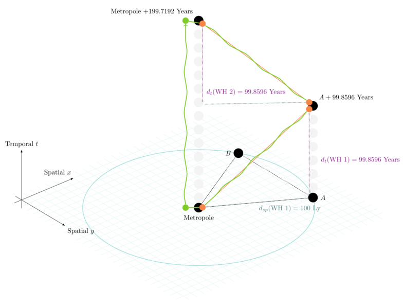 Revision as of 01:22, 27 July 2022 by Sevoris (talk | contribs) (Illustrating the first type of CTC geometry, sending a second wormhole back to the origin of the first wormhole.)