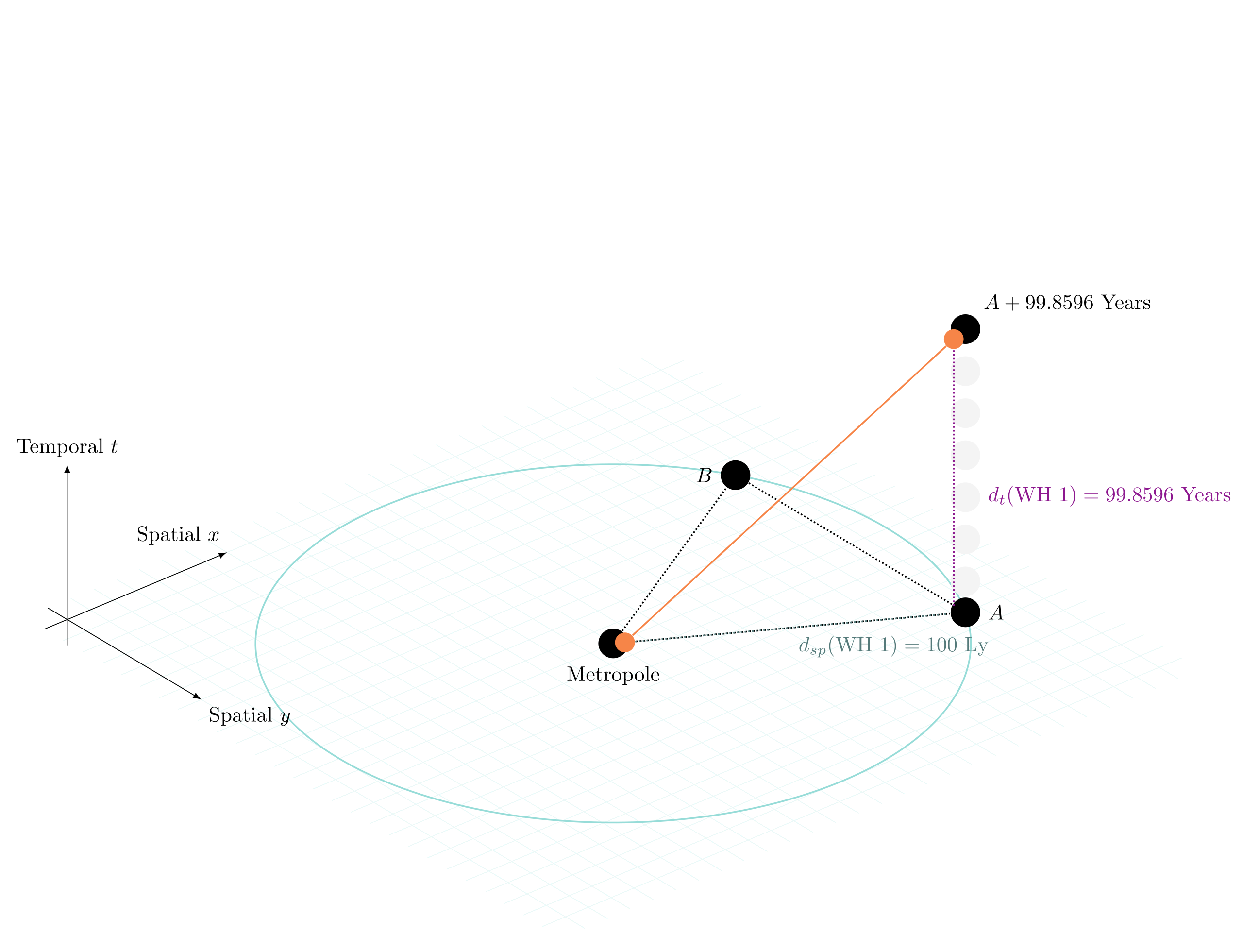 Basic space-time geometry of a single wormhole between Metropole and Colony A.