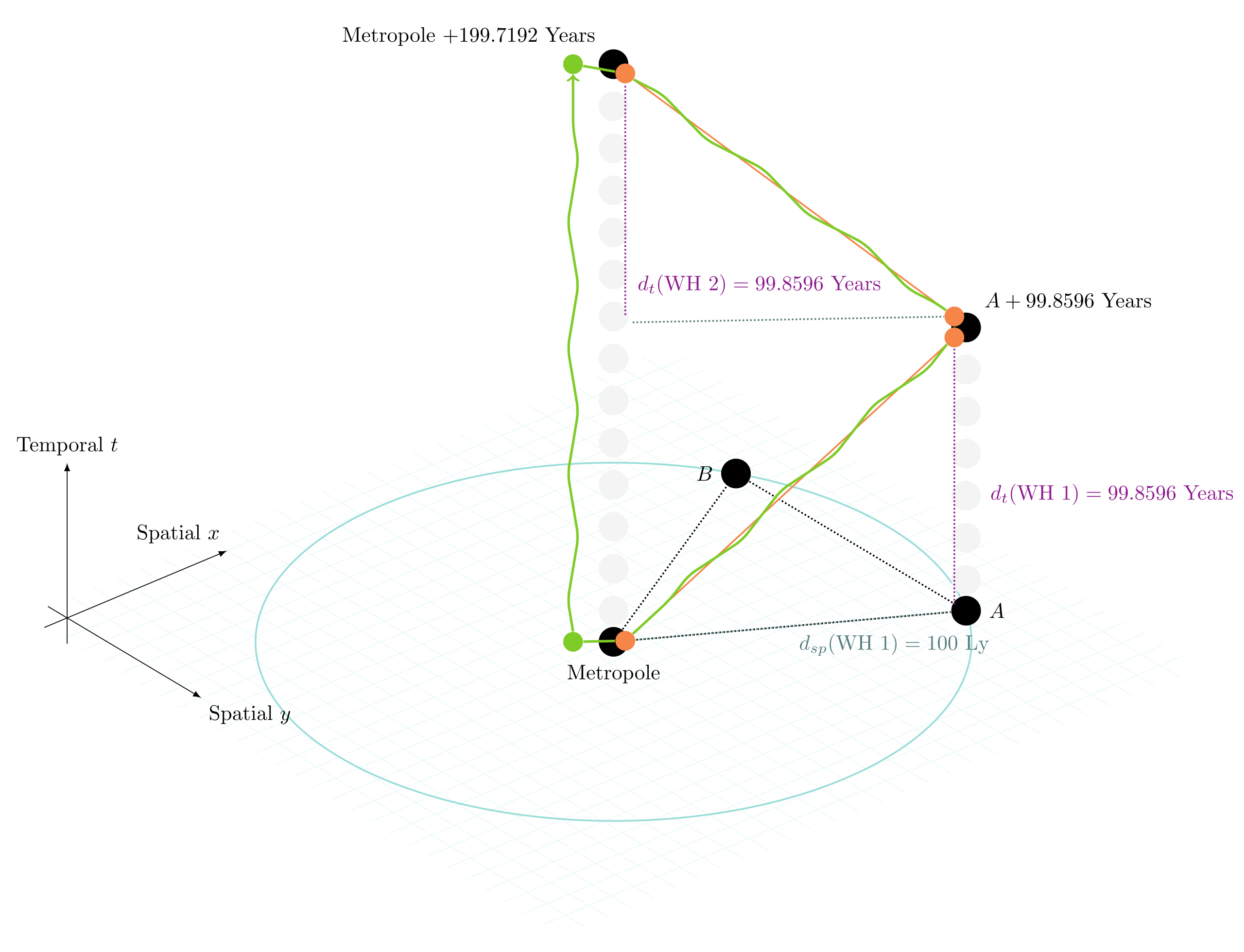 A first CTC configuration with two wormholes between Metropole and Colony A.
