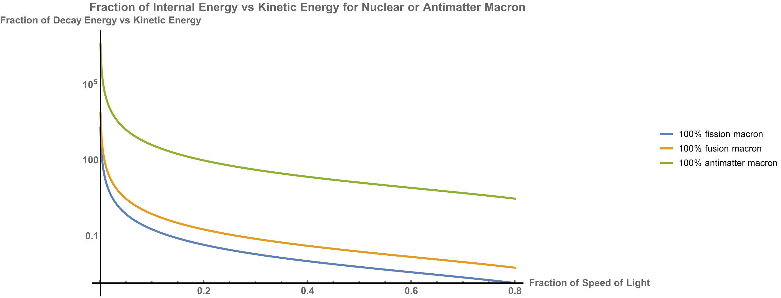 Energy stored in macron for various augmentation fillings versus macron speed. For particle accelerator article.