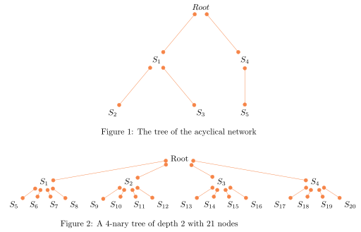 The trees of the acyclic graph example, and a 4-nary graph example.