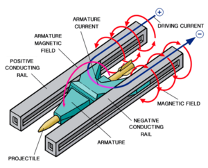 - ↑ 12.0 12.1 D. Adams, U.S. Navy, "Naval Rail Guns Are Revolutionary", U.S. Naval Institute Proceedings. 129 (2): 34. (February 2003) https://web.archive.org/web/20070708054858/http://edusworld.org/ew/ficheros/2004/railguns.pdf