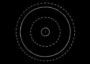 | current | 19:17, 4 December 2025 | 350 × 251 (13 KB) | Lwcamp (talk | contribs) | A diagram of the features of the Reissner–Nordström geometry, showing the inner and outer event horizons (white solid circle), the location of the Schwarzschild event horizon for a black hole of equal mass but no charge (outer dashed circle), the location of the extremal horizon at half the Schwarzschild radius (inner dashed circle), and the central singularity. |