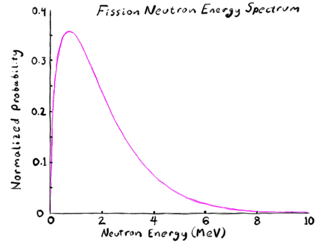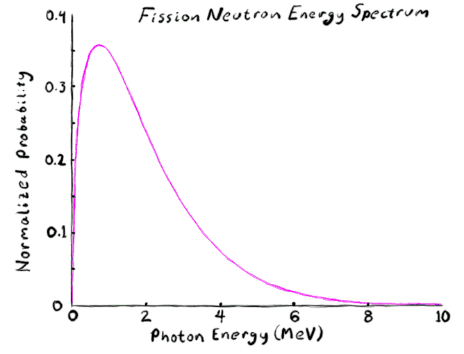 The spectrum of neutrons from the thermal neutron fission of U-235 (Watt fission spectrum).