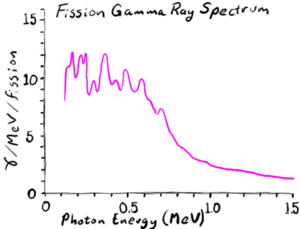 - Delayed gamma rays from subsequent beta decay of the fission fragments: 7 MeV, typically 1-2 MeV each