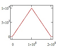 And in this case, the trip takes just twice as long as it would for the same peak velocity but an instantaneous impulse. For the example given, that is an acceleration of 0.0001 m/s^2 ( m/s^2), and you get velocity and distance curves like this: