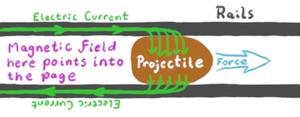 Fundamentally, a railgun is a projectile weapon that uses the magnetic forces of high electric currents to push a projectile between two rails. And yes, this does potentially let the railgun shoot out stuff that goes very fast. And because it only uses electricity, you can get away from funky chemistry stuff like powders and primers. But railguns have several engineering challenges which, while perhaps not insurmountable, are issues which will need to be addressed. The high speed and electric arcing can lead to excessive rail wear. You need to store large amounts of energy, and then shape that energy to produce pulses of extreme currents. And the magnetic energy stored in the rails limits the efficiency of railguns compared to some other kinds of launch systems.