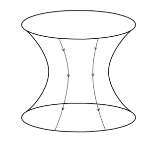 It is fairly easy to see than any wormhole requires negative energy densities (or more generally, regions where the tension is higher than the energy in natural units) to exist. Take a look at any of the wormhole diagrams above – the spherically symmetric ones will probably make it the most clear. If you send a parallel ray of stuff – maybe particles or light or golf balls – through the wormhole, and trace out the straightest possible path of all of those parallel lines, you will see that after they go through the wormhole all those initially parallel trajectories will now be diverging. Positive energy (such as mass) causes attractive forces, drawing trajectories toward it and making the paths converging. To get diverging paths you need the opposite – repulsive gravity – which you can get from negative energy densities or very high tensions. Having the tension be higher than the energy density turns out to be equivalent to a negative energy density – in some frames of reference observers will measure a negative energy density there.